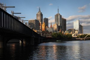 Australia, Victoria, Melbourne, Yarra River and downtown
